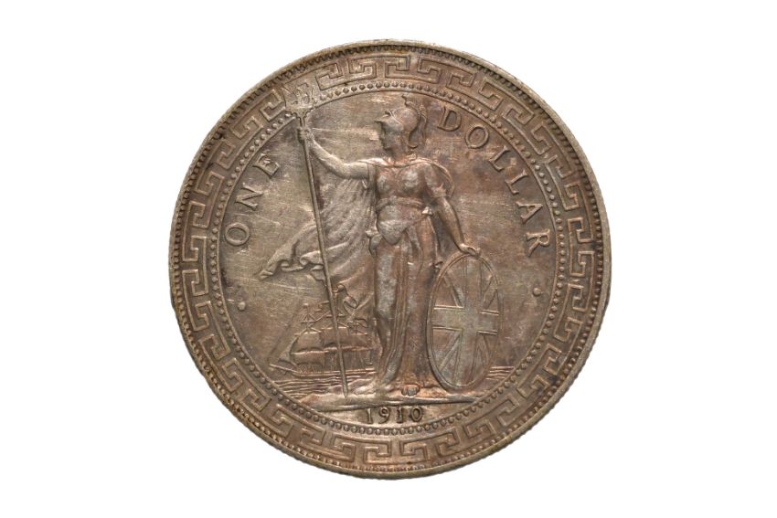 Britannia standing holding a trident and a shield, date below, reverse with Chinese characters and Jawi script, B mint mark to trident, approx VF-XF, some toning