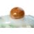 Comprising a celadon and green jadeite example decorated in shou symbol and lotus, auspicious bats and lucky coins to reverse, well hollowed mouth; a brown agate example with relief carved fan; and an amber-toned with relief carved plum blossom tree, 19th-20th century