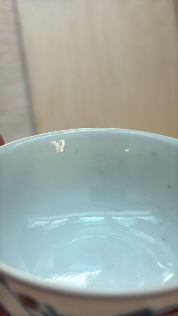 Condition Information: A fine hairline to the rim running through the tail feathers of the orange bird, a few small fleabites to the foot rim