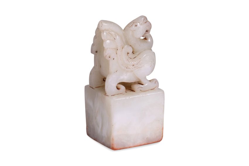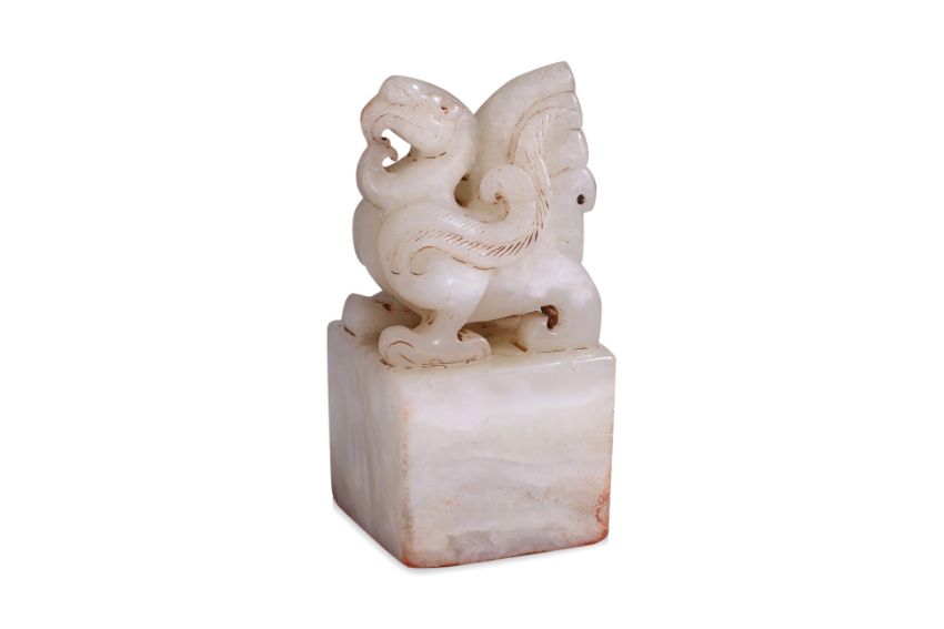 A WHITE JADE MYTHICAL BIRD SEAL