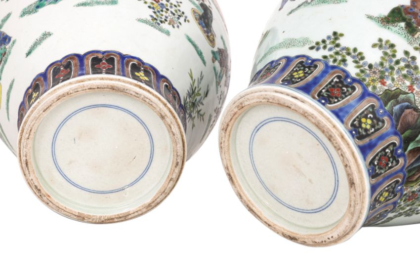 A PAIR OF FAMILLE ROSE PORCELAIN JARS WITH COVERS