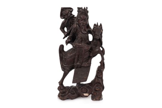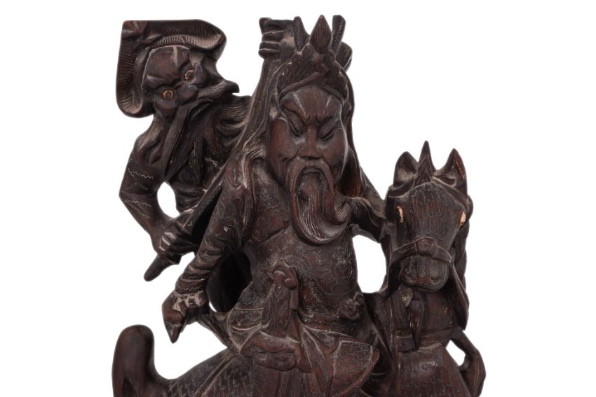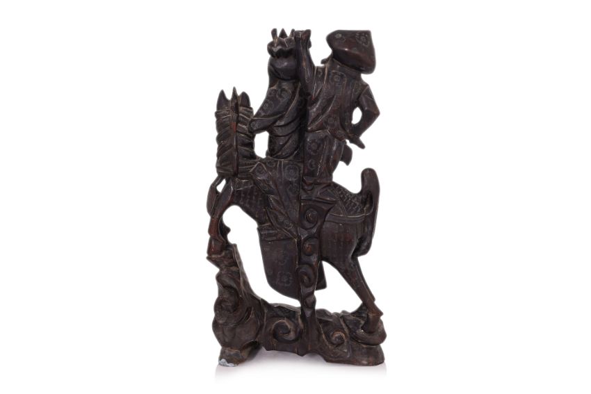 Modelled as Guandi and Zhang Fei riding a horse across rocks, decorated with fine inset wire, probably 1st half 20th century