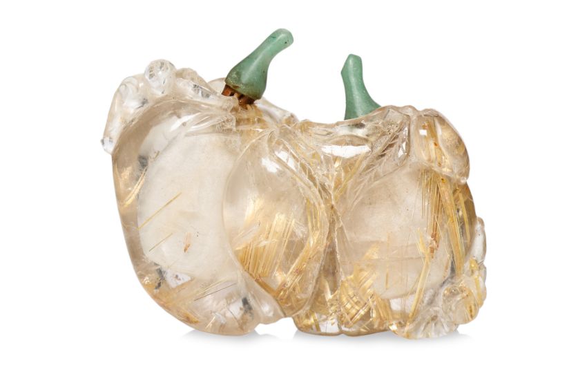 A RUTILATED QUARTZ TWIN PEACH FORM SNUFF BOTTLE