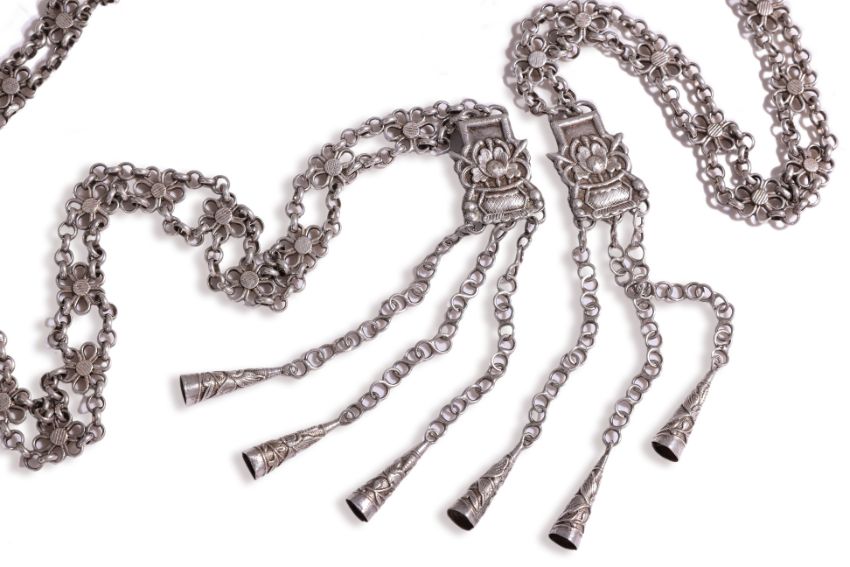 Notes: For a similar example fragrance carrier see; Four Centuries of Silver, Margaret Duda, Times Editions, Singapore, 2002, pg.54 fig.53; for similar chains see pg.158 & 159, fig.20 & 21.
