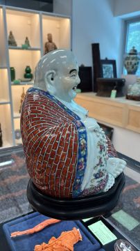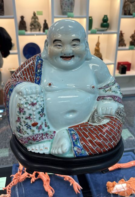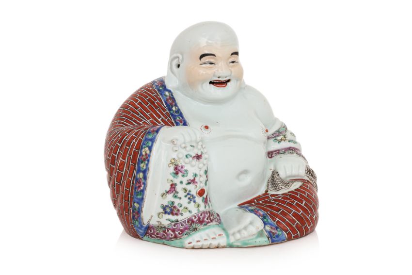 A FAMILLE ROSE PORCELAIN MODEL OF BUDAI