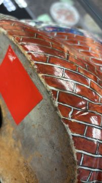 Condition Information: An area of restoration/overpainting to the brick decoration reserve at base, some general wear to edges.