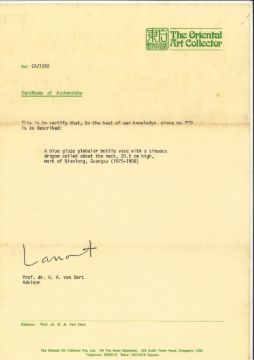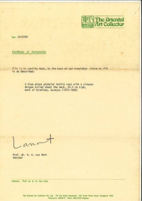 The Oriental Art Collector, Singapore, acquired circa 1980s, with certificate ref: CA/1050