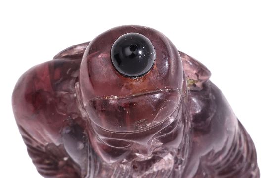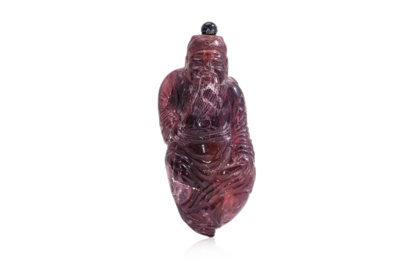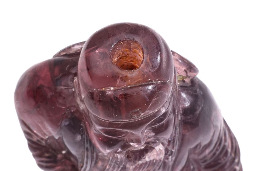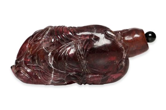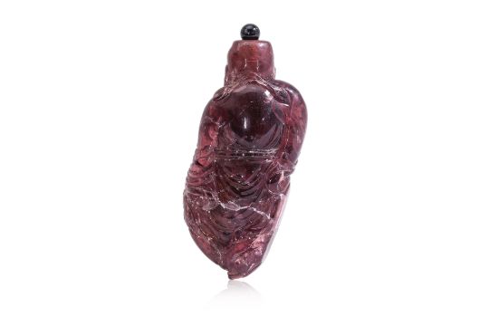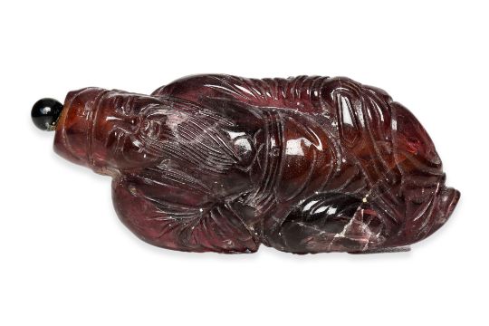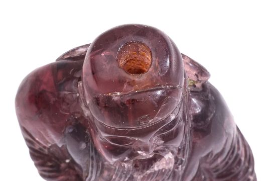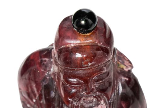 A FIGURAL AMETHYST-COLOURED GLASS SNUFF BOTTLE