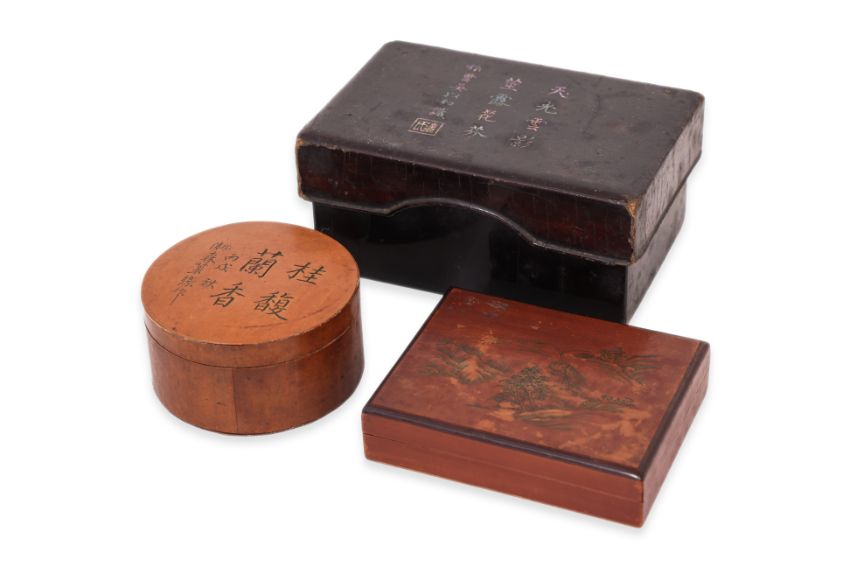 Condition Information: There is some minor loss to the corners of the lacquered box, and some wear to the cover of the smaller rectangular box