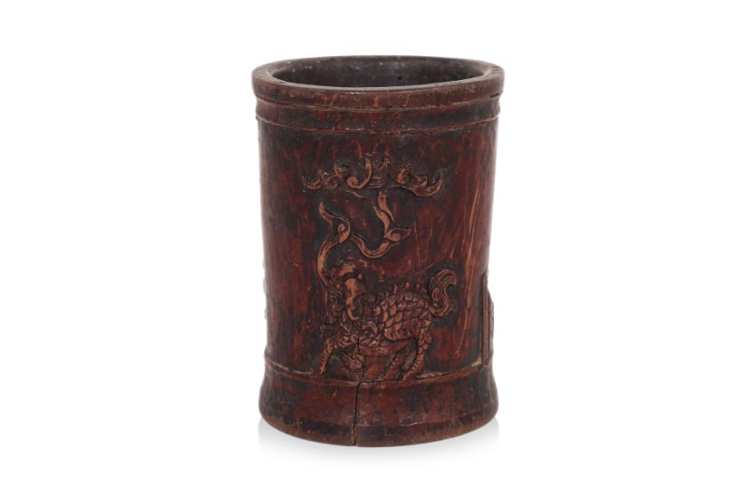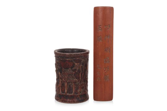 A BAMBOO BRUSH POT AND WRIST REST
