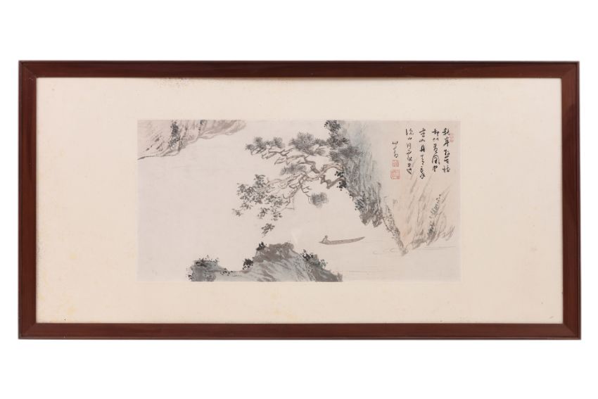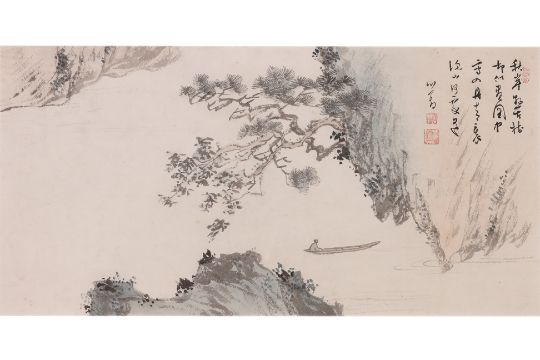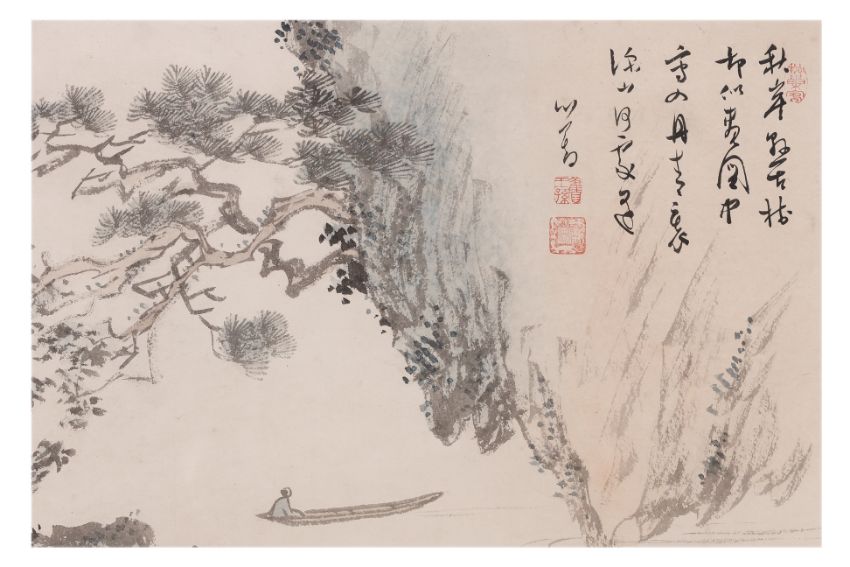 MANNER OF PU RU, FIGURE IN A BOAT BENEATH ROCKS AND PINE