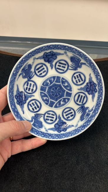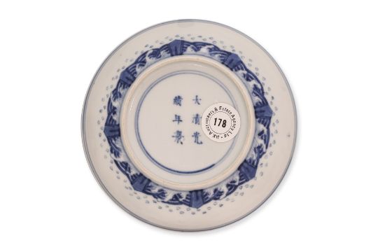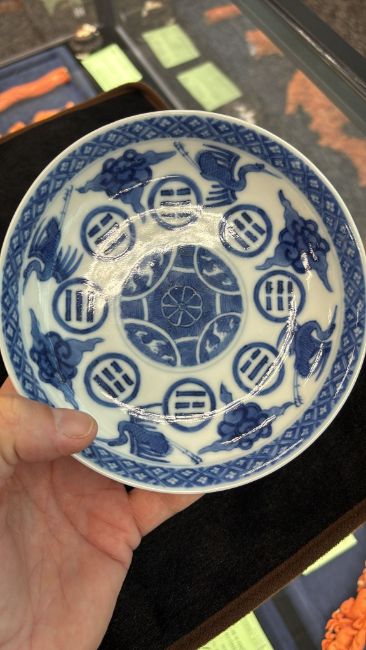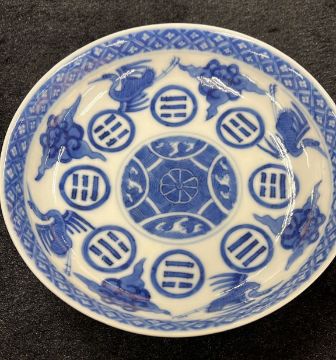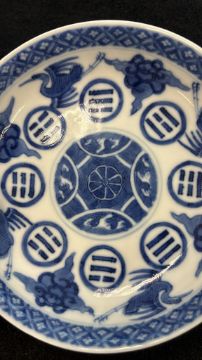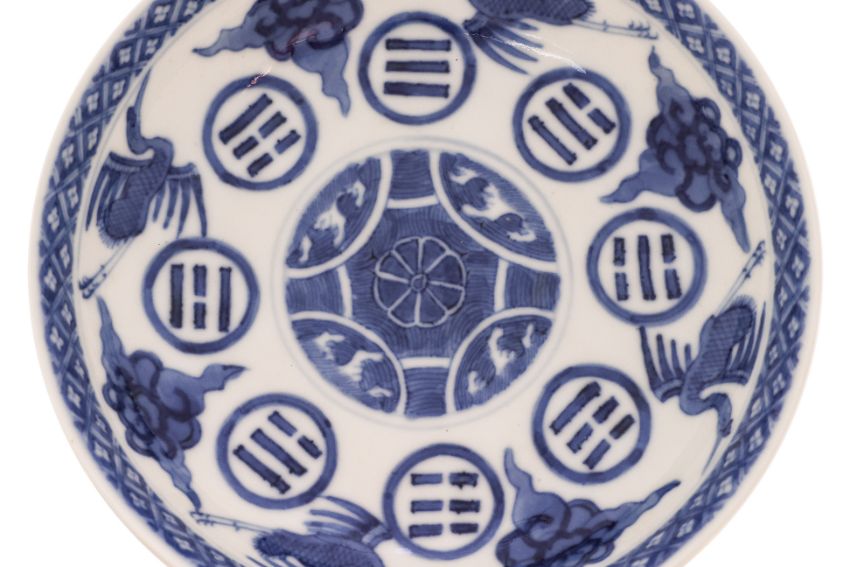 A BLUE AND WHITE CRANE AND EIGHT TRIGRAMS PORCELAIN SAUCER DISH