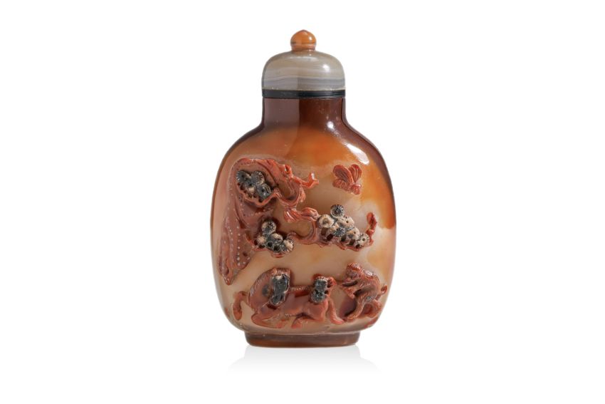 AN AGATE 'MONKEY AND HORSE' SNUFF BOTTLE