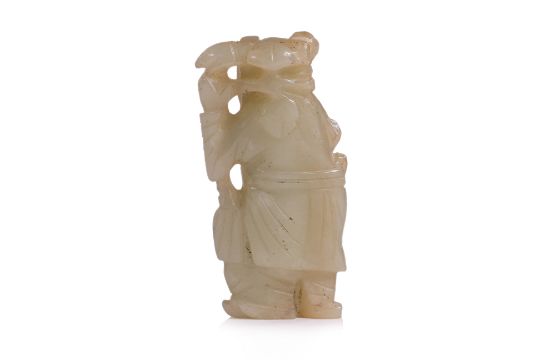 A CARVED CELADON JADE FIGURE