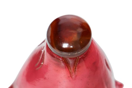 Watermelon-pink glass, modelled with wide opening at mouth and well hollowed interior, carnelian stopper, 19th/20th century