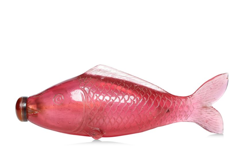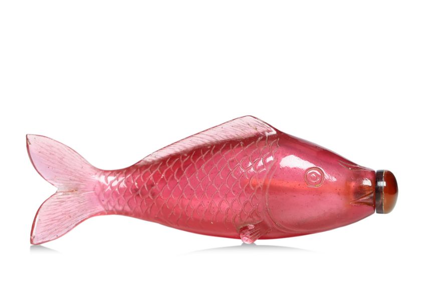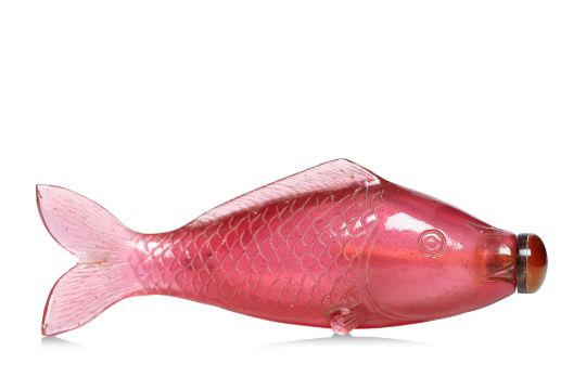 A PINK GLASS FISH-FORM SNUFF BOTTLE