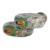 Of compressed circular form and joined at sides during firing, turquoise ground densely decorated in flowers, matching domed stoppers, standing on gilt oval foot, 19th/20th century