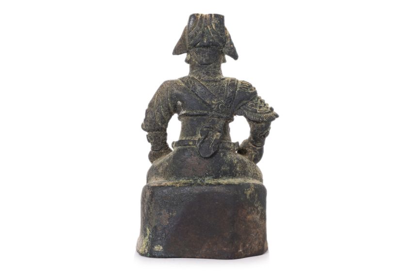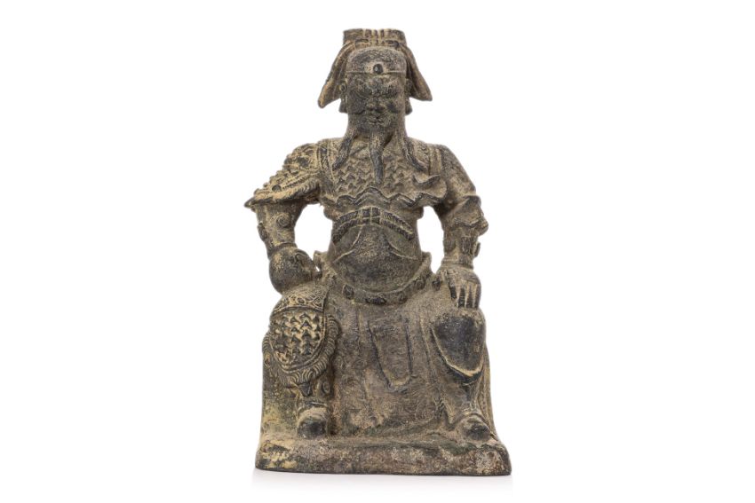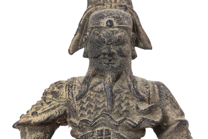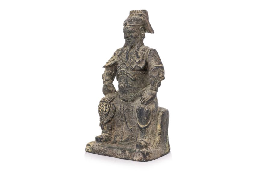 Modelled wearing armour and futou headdress, hands at hips and clenched right fist, late Ming dynasty circa 16th/17th century
