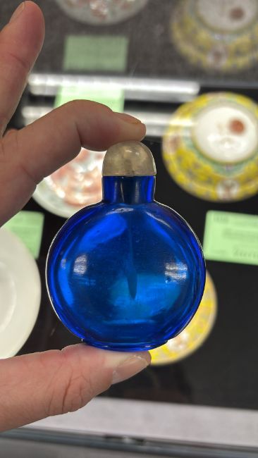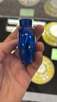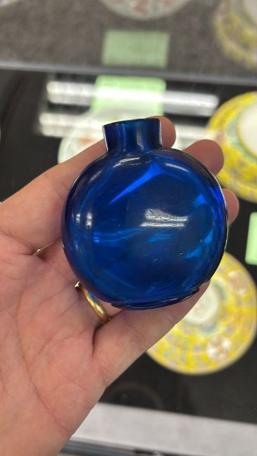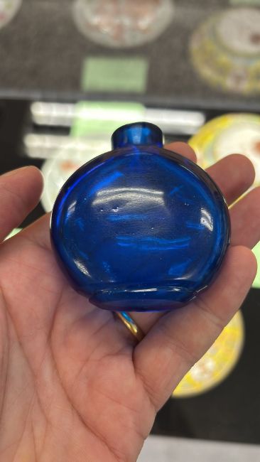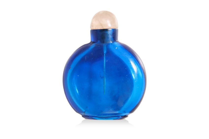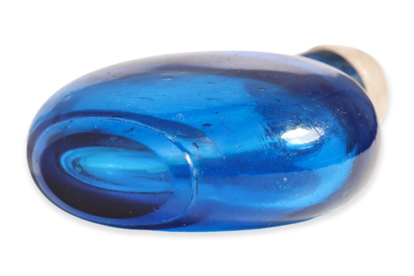 A LARGE SAPPHIRE-BLUE GLASS SNUFF BOTTLE