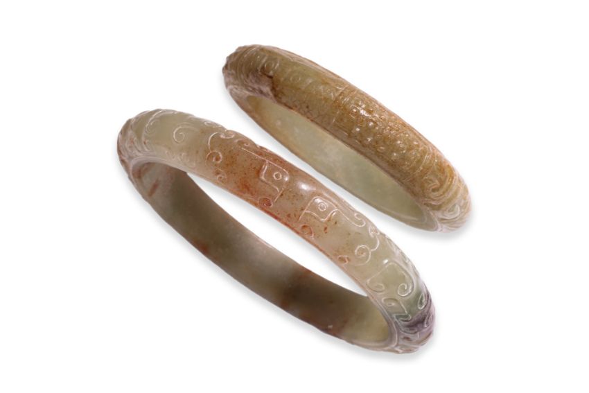 The larger example decorated in archaistic relief to the curved exterior, the smaller example decorated similarly to the exterior