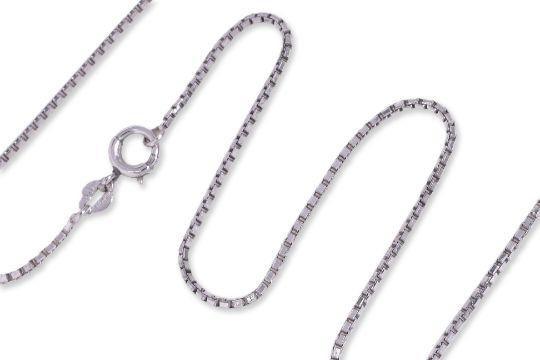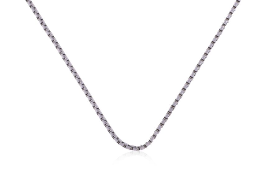 Featuring a white gold chain marked '18K'.