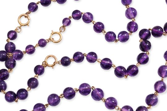 A GROUP OF THREE AMETHYST BEAD NECKLACES