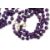 Featuring amethysts beads measuring approximately 8.0-8.5mm, attached to a yellow gold clasp marked '14K', with unmarked link spacings.