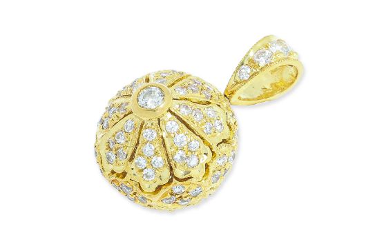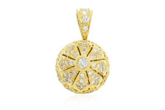 Featuring round brilliant cut diamonds totalling approximately 0.84 Cts, mounted in a yellow gold setting marked '750' for 18K, alongside various other marks.
