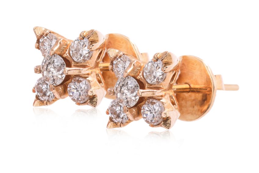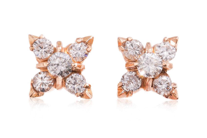 Featuring round brilliant cut diamonds totalling approximately 0.42 Cts, mounted in an unmarked yellow gold setting.
