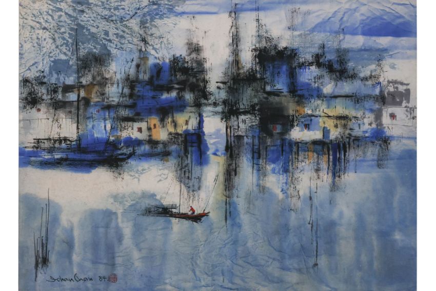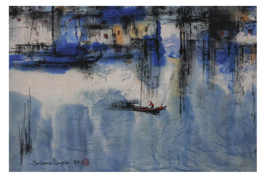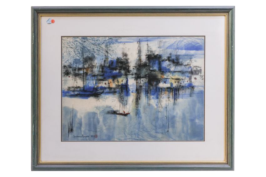 Mixed media on paper, signed and dated 84, with artist stamp at lower left corner