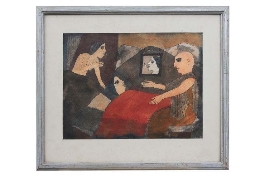 Watercolour on paper, initialled lower right