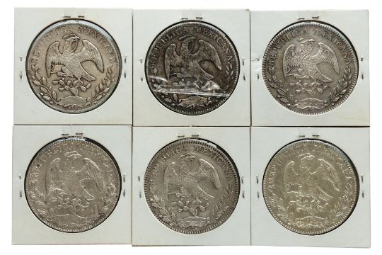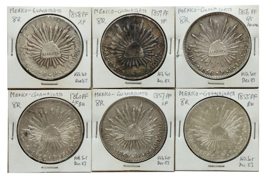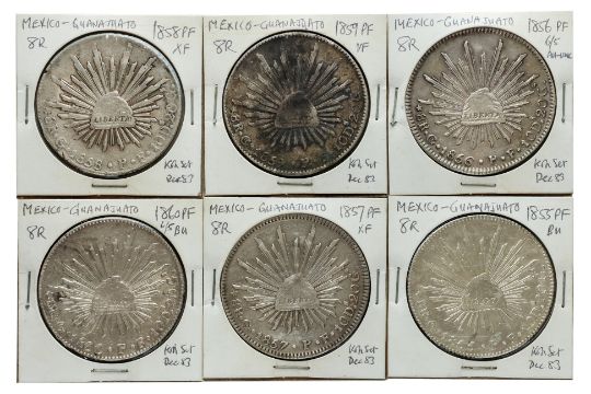 Comprising: 1855 PF, noted as BU; 1856 PF, noted as AU-UNC, '6/5'; 1857PF, noted as XF; 1858 PF, noted as XF; 1859 PF, noted as VF; 1860 PF, noted as BU, '6/5'